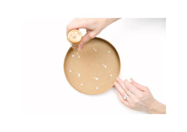 Primeiro, desenhe a medida da sua tampa sobre o papel de scrapbook para dar início ao seu trabalho.