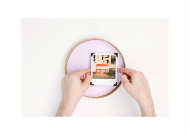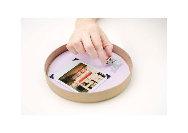 Com fita de scrapbook, cole uma fotografia da sua lembrança.