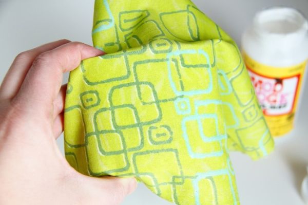 Agora, posicione o tecido sobre a cola.