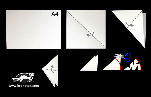 Recorte a pontinha desse triângulo, como na imagem acima, deixando-o como uma fatia de pizza.
