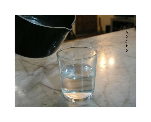 Novamente, acrescente água quente sobre a metade do copo de vidro.