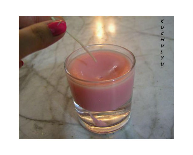 Quando a cera começar a endurecer, perfure o pavio sobre o seu meio.