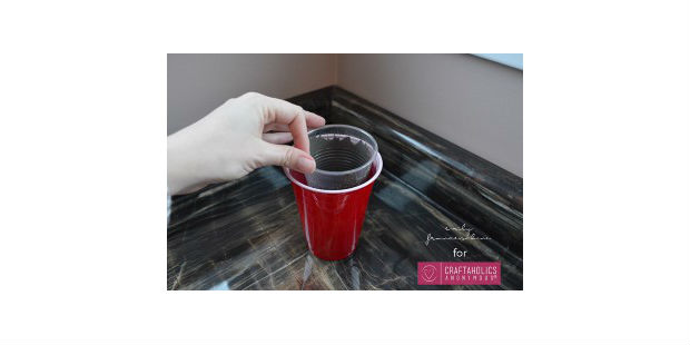 Logo, coloque um copo descartável de tamanho um pouco menor dentro do material.