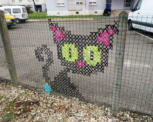 Fonte: http://www.icreativeideas.com/creative-street-art-cross-stitch-murals-on-fences/