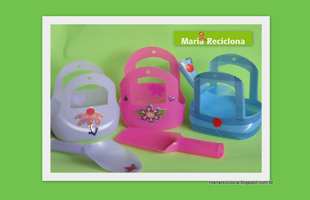 Veja que lindos cestinhos e baldinhos, além de pazinhas, você pode confeccionar com as embalagens de amaciante.