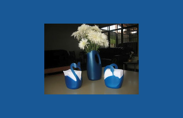 Na imagem acima você confere um lindo porta trecos feito a partir da reciclagem de embalagem de amaciante.