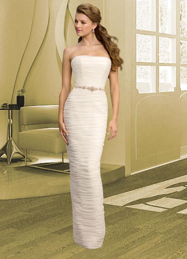 O vestido Tubinho é um clássico. No estilo minimalista, ele desce reto do decote aos pés. É possível fazê-lo mais ou menos justo, dependendo do gosto da noiva. Por evidenciar o corpo, é ideal para quem estiver em boa forma.