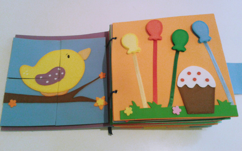 Aproveite os retalhos de EVA bem pequenos para encher almofadas ou travesseiros e os retalhos um pouco maiores para fazer florzinhas ou livrinhos, por exemplo.