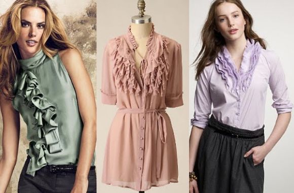 Caso você tenha o quadril maior que os ombros deve fazer o inverso, e usar blusas com babados e a parte de baixo do corpo com peças lisas e retas, como uma camisa com babados ao redor dos botões ou uma blusa com babados no decote ou nas mangas, para desviar a atenção do seu quadril e levá-la para a parte de cima do corpo.