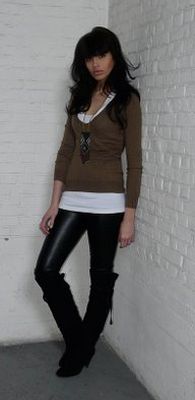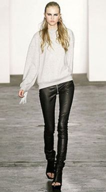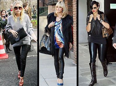Fazer mix de texturas também pode ser bem interessante quando você montar uma produção com legging de couro, você pode coordenar sua calça com uma blusa de moletom para o dia (lembre-se que o moletom esta em alta neste inverno) ou combiná-la com uma blusa com paetês, para a noite.