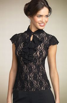 Há vários modelos de camisas de renda, indo desde a camisa tradicional, com mangas compridas, até os modelos com mangas curtas ou até mesmo camisas sem mangas. Mas, seja qual for o modelo escolhido, se você for sair durante o dia com uma camisa de renda, sempre use uma blusinha de alcinha por baixo, ou uma regata ou ainda uma blusa tomara que caia, pois, barriga de fora (mesmo que disfarçada pela semitransparência da renda) não cai bem em ninguém durante o dia, mesmo sendo você uma mulher magérrima. Tops e camisa de renda estão liberados somente à noite, para mulheres magras e combinados com peças da parte de baixo do corpo bem comportadas.