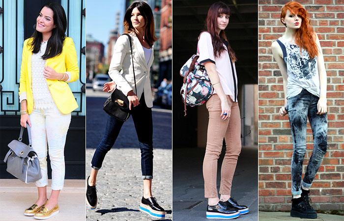 Com aparência masculina e agressiva, os modelos são uma espécie de mocassim com solado mais alto. Veja a seguir algumas fotos e dicas de como combiná-los em um look harmonioso e cheio de estilo: