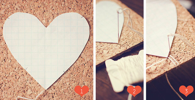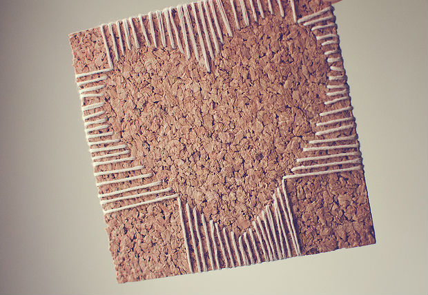 Cole o seu molde de coração sobre o centro da sua cortiça, como na imagem acima.
