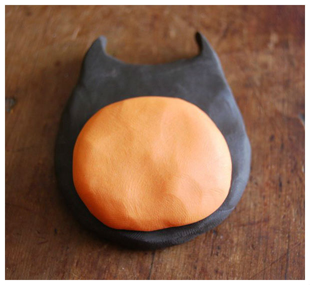 Agora, faça uma bolinha laranja para colocar em cima da massa preta.