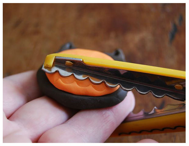 Com uma tesoura de picotar, faça os detalhes dessa parte laranja.