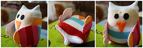Créditos:http://whimsyloft.com/2010/02/tutorial-socks-owl/