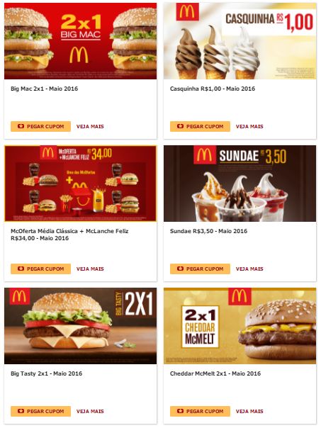 Para participar da promoção McDonald’s 2016 e, pegar os seus cupons McDonald’s 2016, você deve acessar o endereço eletrônico do McDonald’s, escolher um produto e clicar no menu “Pegar Cupom”.