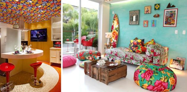 Almofadas e cortinas são opções para quem não quer se arriscar tanto, e o resultado é fantástico.