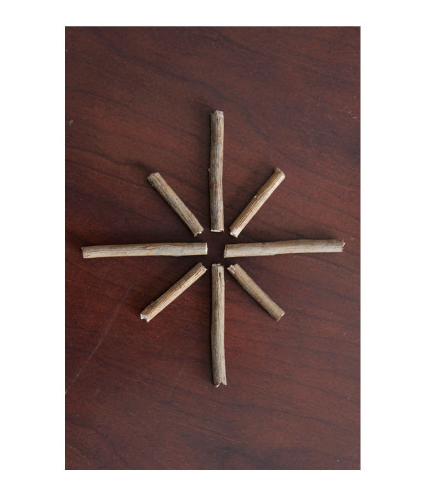 Corte 4 pedaços grandes de galho e outros 4 pedaços pequenos.