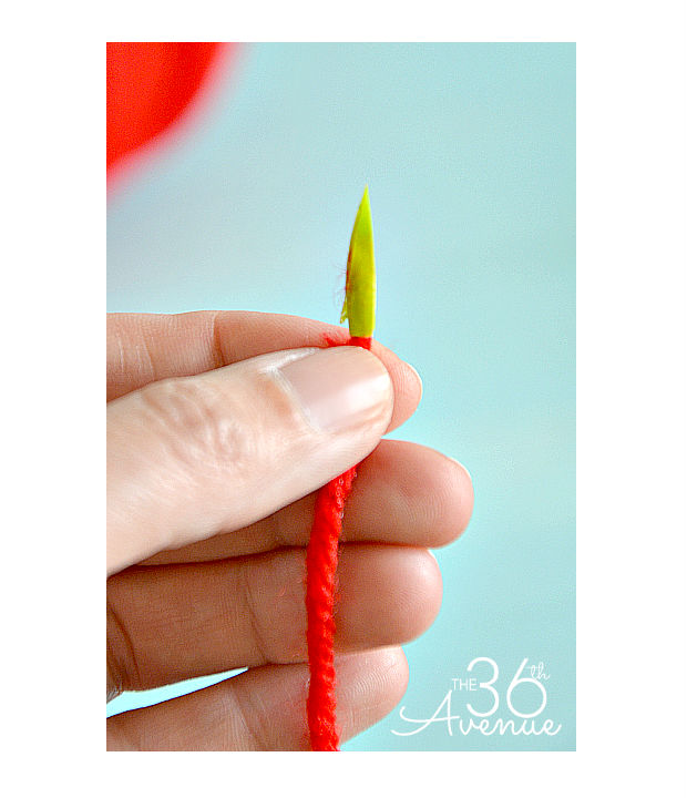 Obtenha um longo pedaço de linha ou de fita e faça uma pontinha com um pedaço de papel ou algo semelhante, como na imagem acima, para funcionar como uma espécie de agulha.