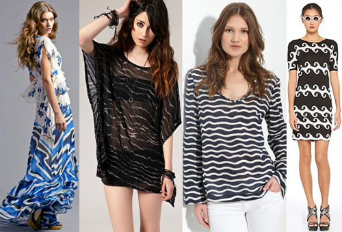 Estampas chamativas, bem grandes, com fundo branco ou com motivos na horizontal (não necessariamente listras) criam ilusão de volume à silhueta, por isso, se a sua intenção é criar curvas em seu corpo, invista em um modelo de estampa bem inusitada.
