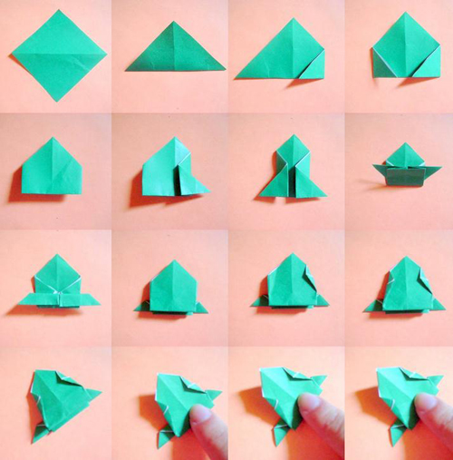 A dobradura de papel sapo diverte os pequenos.