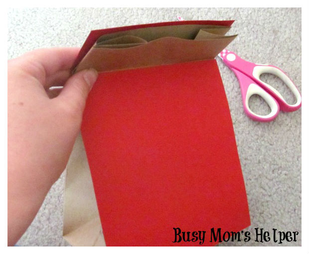 Meça o tamanho a ser utilizado da sua cartolina vermelha, através da sua sacola de papelão.