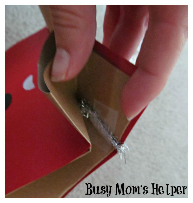 Cole cartolina vermelha no lado frontal e traseiro da sacola.