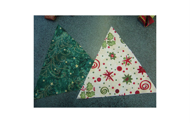 Corte 2 triângulos com lados iguais, medindo 22cm cada lado.