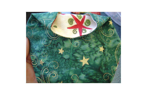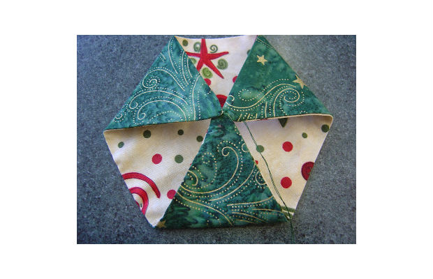 Junte as 3 pontas desse triângulo, costurando-as e costurando também aquela parte que você deixou aberta.