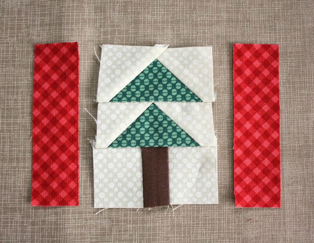 Costure retângulos marrom para formar o tronco.