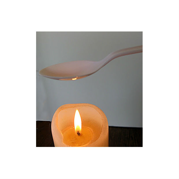 Coloque a ponta de uma colher bem próxima do fogo de uma vela aceso.