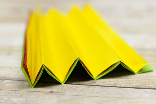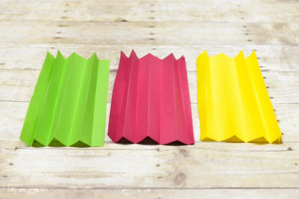 Em seguida, posicione todas as cores de papel juntas e faça dobras sanfonando os papéis.