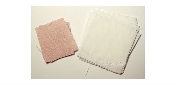 Você precisará de 16 quadrados de tecido no tamanho 7,5cm x 7,5cm e 8 quadrados de tecido no tamanho 5cm x 5cm.