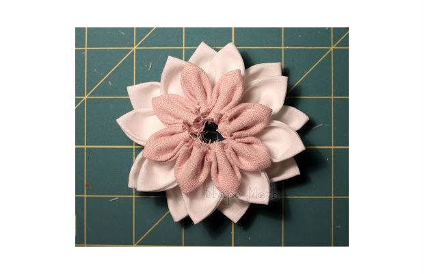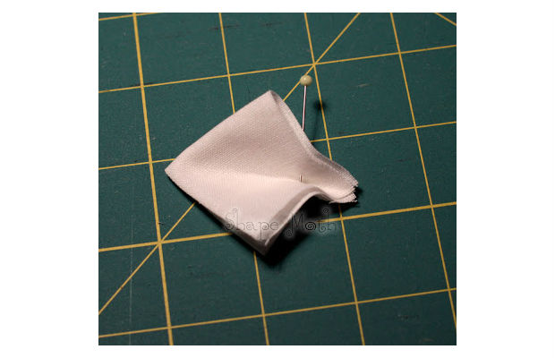 Dobre cada um dos quadrados na forma de pétalas, segurando-os com alfinetes.