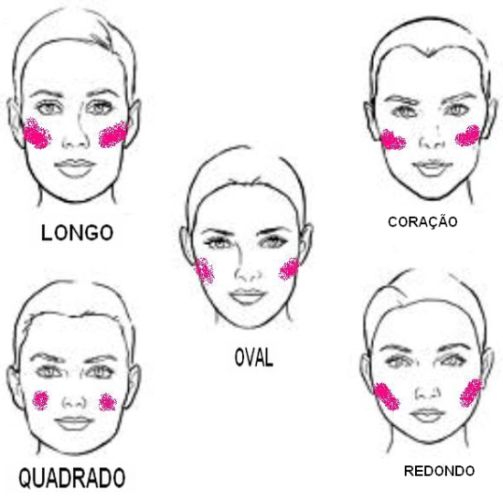 Para suavizar, garantir saúde ou nos casos dos rostos longo, quadrado e coração, o blush deve ser colorido, como rosa, pêssego ou alaranjado. Já para marcar os ângulos do rosto oval e do rosto redondo, use um blush marrom ou um pó bronzer, para que a cor escura crie profundidade ao rosto. Mas não exagere no produto em nenhum caso.