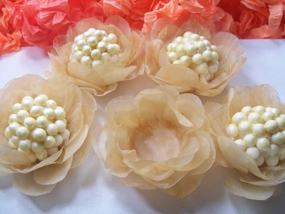 Comece separando todos os materiais que você vai utilizar em seu artesanato. Depois corte um pedaço do papel de seda com o tamanho de sua preferência. Dobre o papel várias vezes, para criar a base de sua flor, e corte a borda em formato curvado ou com o formato de sua preferência. Abra o papel. Utilize três ou quatro flores para criar a sua forminha de papel de seda. Coloque as partes sobre o medido de remédio e pressione com o frasco de remédio, para vincar. E está pronto!