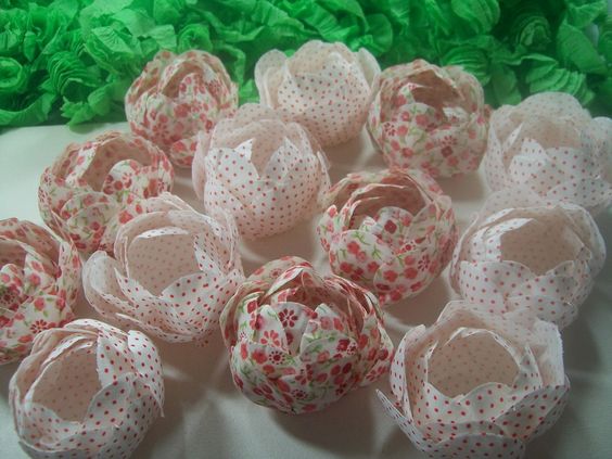 Você pode usar papel, tecido, EVA, juta, plástico grosso, papel vegetal e mais uma gama enorme de materiais para criar as suas forminhas de doces. Para enfeitar as forminhas os materiais também podem ser os mais variados possíveis. Fitas, pedrarias, pintura, glitter e até botões sofisticados podem ser aplicados em suas forminhas, para deixá-las ainda mais especiais.