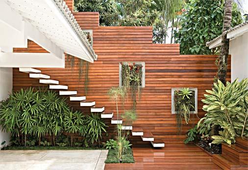 Se você prefere algo não tão chamativo, projete seu jardim próximo a paredes. Assim, o espaço verde será um lindo complemento de sua decoração.
