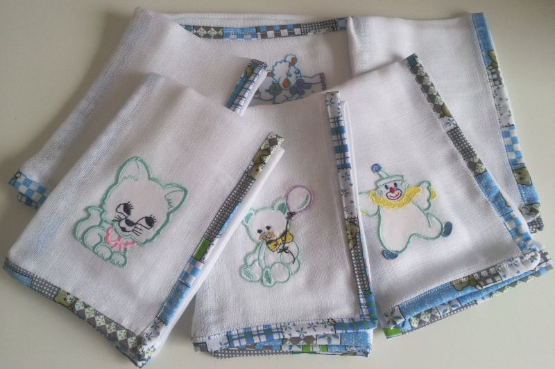 Se você sabe pintar, bordar (à mão ou à máquina) ou fixar apliques pode decorar a fralda com estes artesanatos, além de caprichar também na borda da fralda.