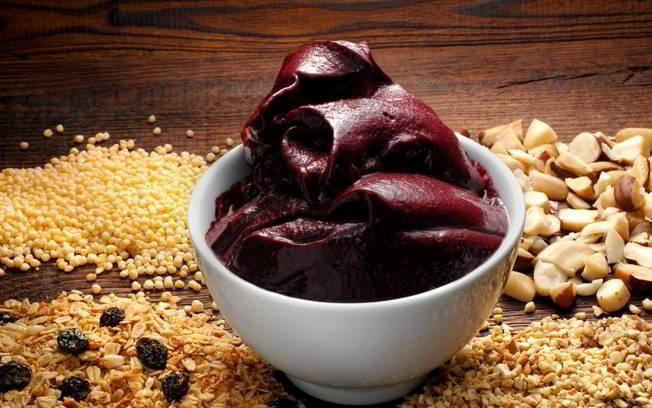 Comumente, o açaí na tigela é servido juntamente com frutas e cereais.