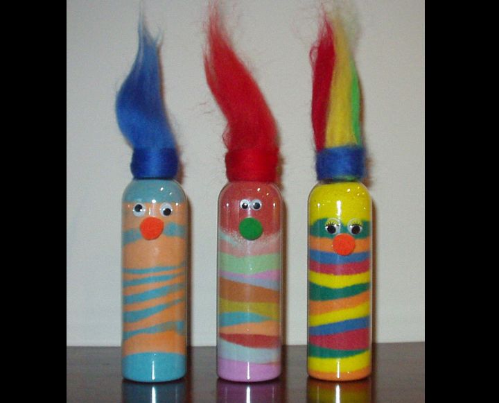 Veja mais ideias de garrafa decorada com areia colorida. Você pode usar um palito de madeira ou objeto pontiagudo comprido para fazer desenhos na areia colorida, se você colocar a areia dentro de um pote com borda mais larga.