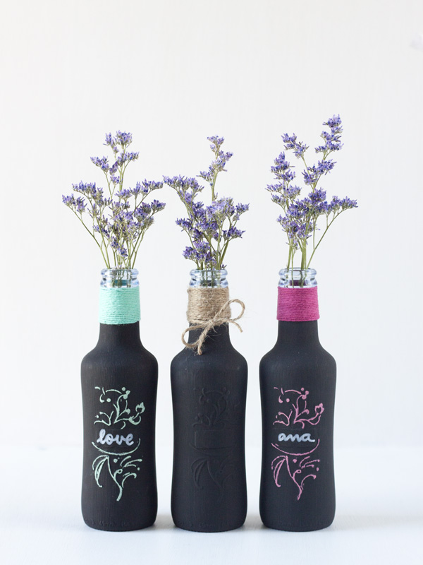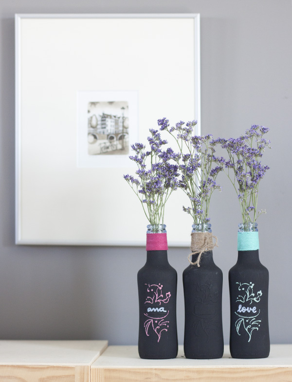 • Fonte: http://www.azucarillosdecolores.com/2014/05/botellitas-recicladas-con-pintura-pizarra.html