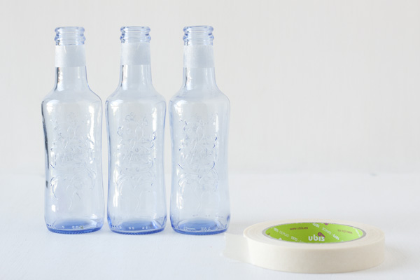 Cole a fita adesiva na região do gargalo da sua garrafa.