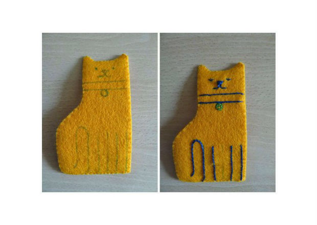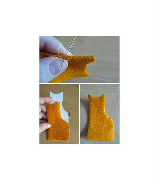 Transfira os traços do gatinho, de acordo com o seu molde, para o feltro.