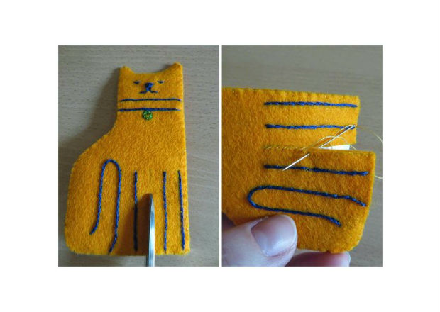 Recorte as pernas do seu gatinho, como na imagem acima, e costure-as.