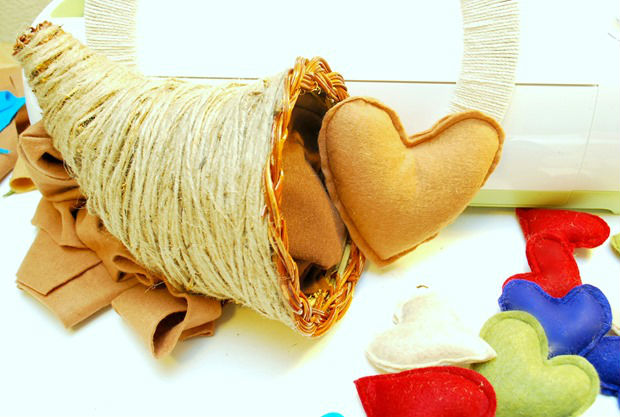Cole alguns corações dentro da cornucópia.