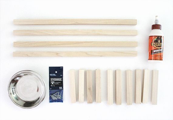Comece separando todos os materiais que você vai utilizar em seu artesanato. Depois serre quatro pedaços finos de madeira com o mesmo tamanho e possuindo tamanho grande, pois estes pedaços de madeira serão a estrutura da sua peça, o comprimento da sua peça. Serre também 10 pedaços pequenos de madeira, mas com todos os pedaços também com o mesmo tamanho.
