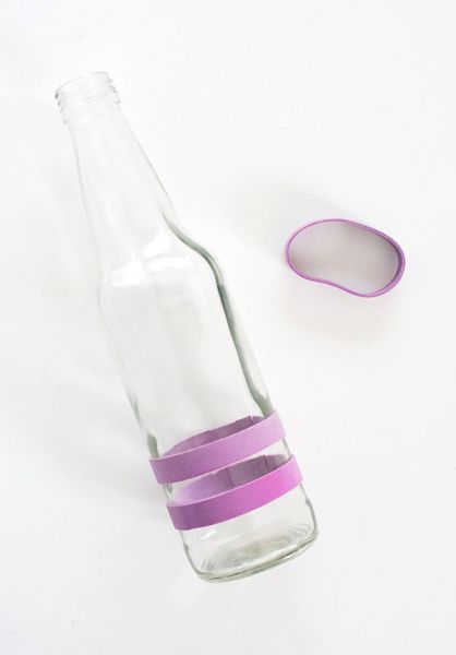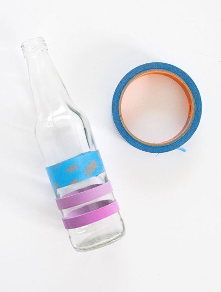 Em seguida, posicione a fita adesiva na parte da garrafa de vidro que você desejar.