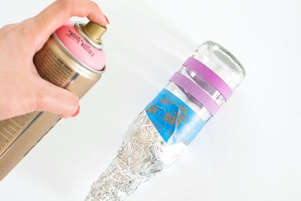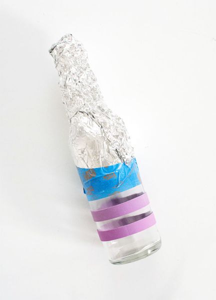 Logo após, proteja a parte da garrafa que você quiser com um pedaço de papel-alumínio.